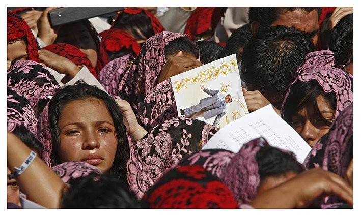 La histeria colectiva, el júbilo, el hambre de verlo, tocarlo, el éxtasis de saberse cerca de él es tan solo el lógico resultado de un entrenamiento constante, de una inducción sicológica, de un adoctrinamiento efectivo tan recurrente en el sectarismo. Y ahí estaba yo creyéndolo y haciéndolo todo al principio, inerte e incierto después, asqueado y obligado al final.